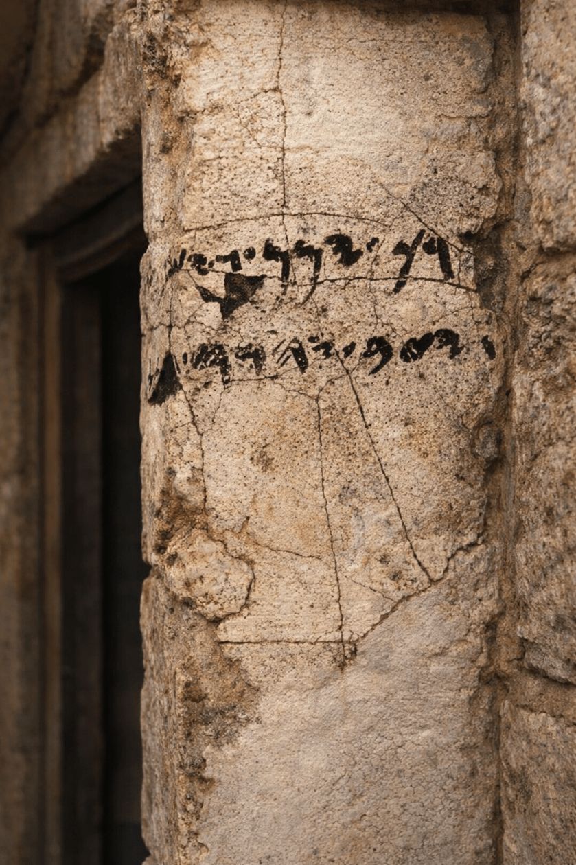 Рядом с восточным и западным входами, ведущими в центральный двор крепости, стены и косяки дверей, были расписаны рисунками и торжественными надписями на иврите, однако буквами финикийского алфавита. Возможно в то время, финикийский алфавит считался престижней ивритского. Вероятно, при постройке здания были приглашены профессиональные писцы и художники, получившие задание оформить стены.