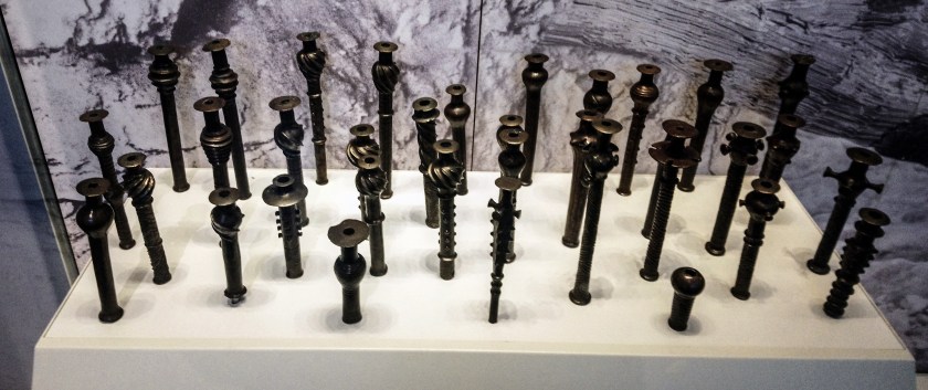 Вместе с тем толстостенные булавы, отлитые полностью из металла, могли использоваться в качестве оружия. Найдены следы их фиксации – остатки деревянных рукоятей и битума во втулках.