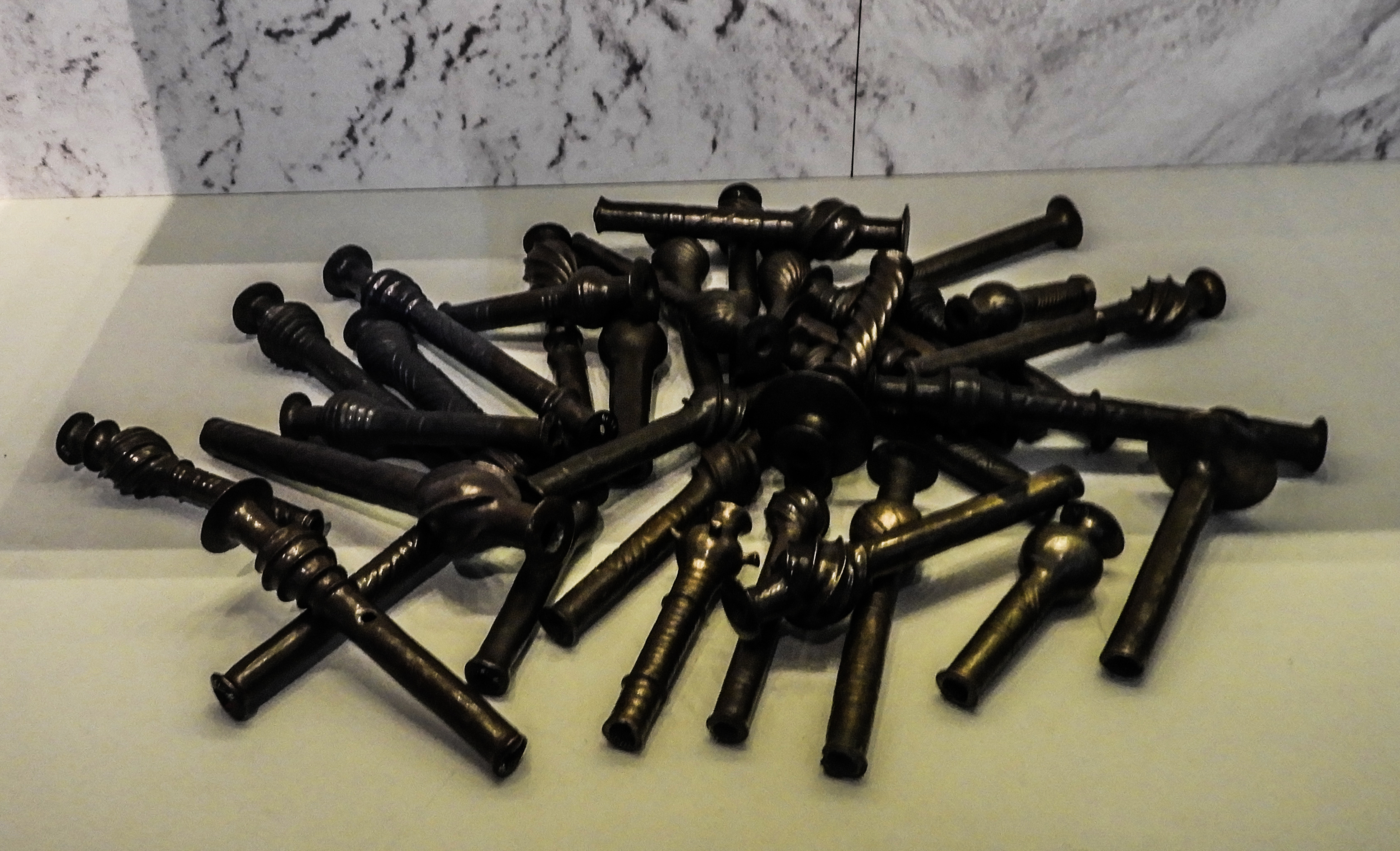 Большинство изделий чрезвычайно сложной формы, они отлиты по восковой модели на высочайшем техническом уровне.