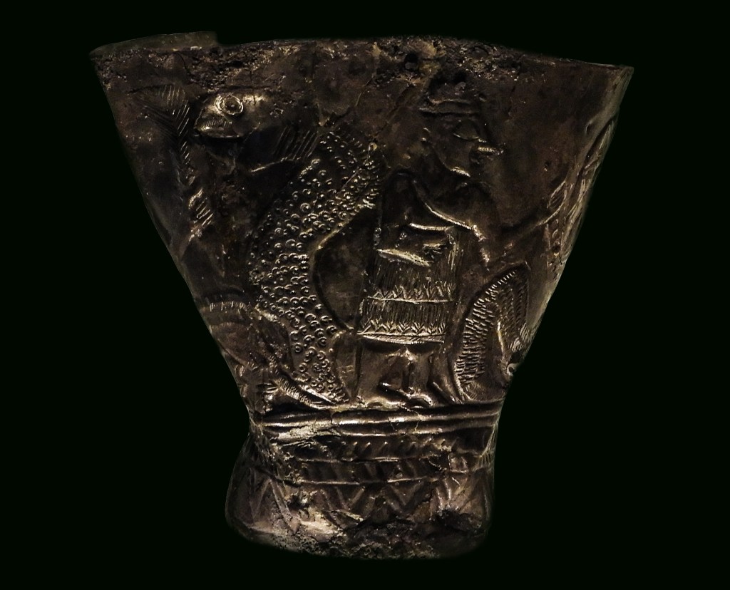 Другая сцена на чаше занимает вторую половину чаши. Симметричная композиция в месопотамском искусстве являлась чуть ли не каноном.
