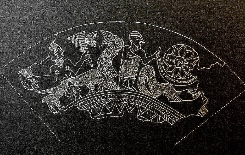 Очевидно, что на чаше из Эйн-Самии изображён поединок Мардука с Тиамат.