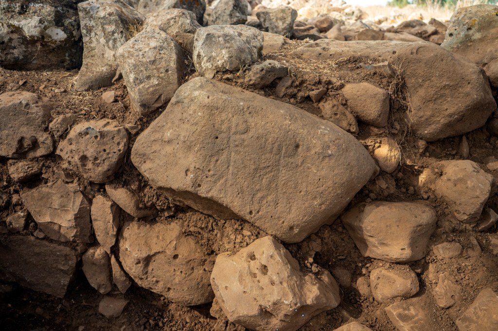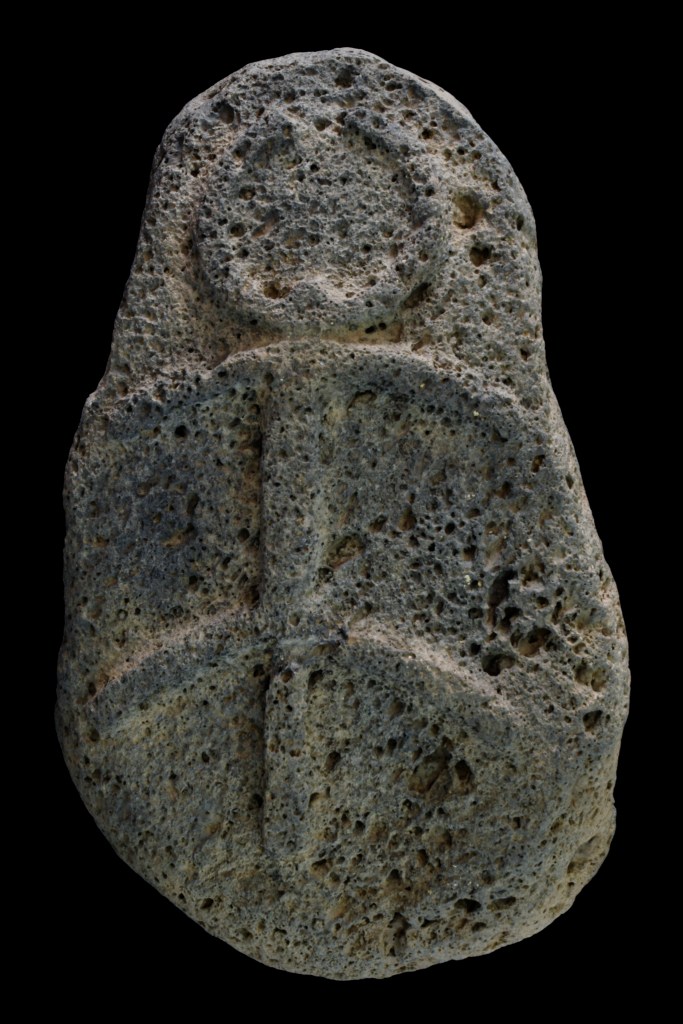 Фото Янива Бермана (Управление древностей Израиля): Камень с изображением богини с корзиной или музыкальным инструментом, возможно, бубном