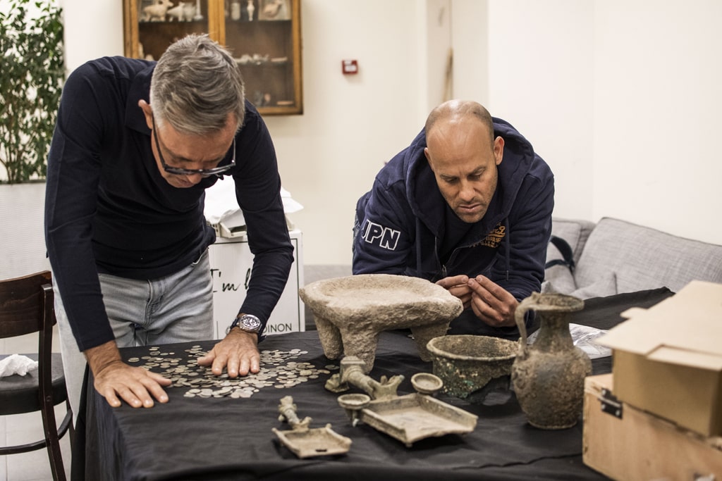 И хоть такое нередко случается в Иерусалиме, бдительные детективы из участка «Сердце Столицы» не только остановили машину, но и обыскали ее. В багажнике они увидели ящик с предметами, которые, по мнению догадливых полицейских были непохожими на современную утварь, особенно насторожили их монеты с изображениями и буквами на латинском. Как выяснилось впоследствии, находки оказались редкими артефактами римского периода.