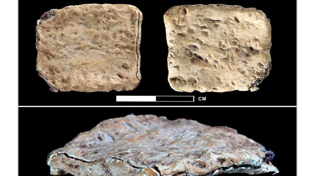 Артефакт (свинцовая пластинка 2 см на 2 см) был найден в декабре 2019 года библеистом Скоттом Стриплингом в ходе влажного просеивания археологического «мусора», собранного профессором Адамом Зерталем, обнаружившим в апреле 1980 года культовое сооружение на горе Эйвал, относящееся к концу позднего бронзового века.