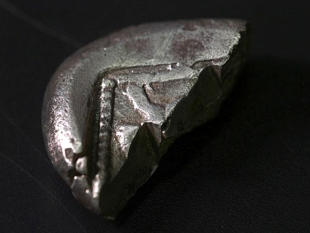 Половинка серебряной монеты является прекрасной иллюстрацией перехода от торговли посредством обмена товаров (или оплаты по весу драгоценными металлами) к новой, монетной, государственной политике.