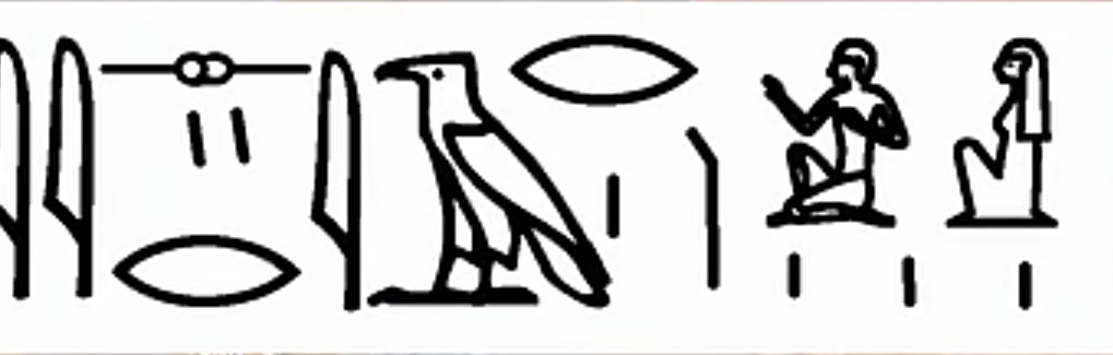 Скрин с Ютуба: Прорисовка иероглифов «Исраэль» со стелы Мернептаха