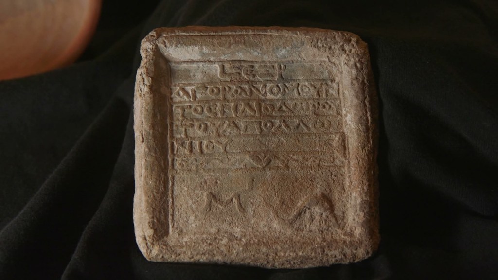 Надпись — «Гелиодор, сын Аполлония, агораном» — указывает на имя инспектора мер и весов и датируется 165 годом по селевкидскому летоисчислению (147/148 гг. до н.э.), что относится к периоду эллинистического правления в Земле Израиля.