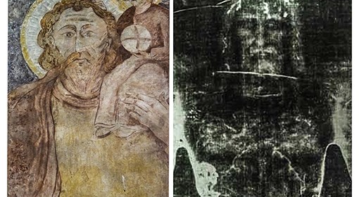Итальянский небольшой город Маростика. Очень странная фреска 13 века в замке могущественных Скалигеров. Крепкий мужчина в багряном плаще с нимбом вокруг головы держит в левой