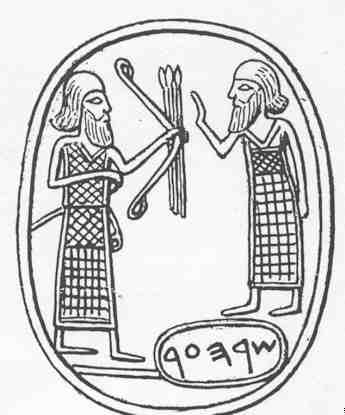 Булла с оттиском печати на иврите из Иудеи, VIII в. до н. э. Надпись гласит שר הע(י)ר (сар hа-ир) — «Правитель Города» (Иерусалима). На печати изображены двое мужчин, носящие волосы по плечи, длинные бороды, одетые в мантии, которые украшены перекрещенными линиями. Человек с левой стороны, держит в левой руке лук и три стрелы. Возможно, на этой булле изображён царь Иудеи, протягивающий правителю города знак власти, полномочий – лук и стрелы.